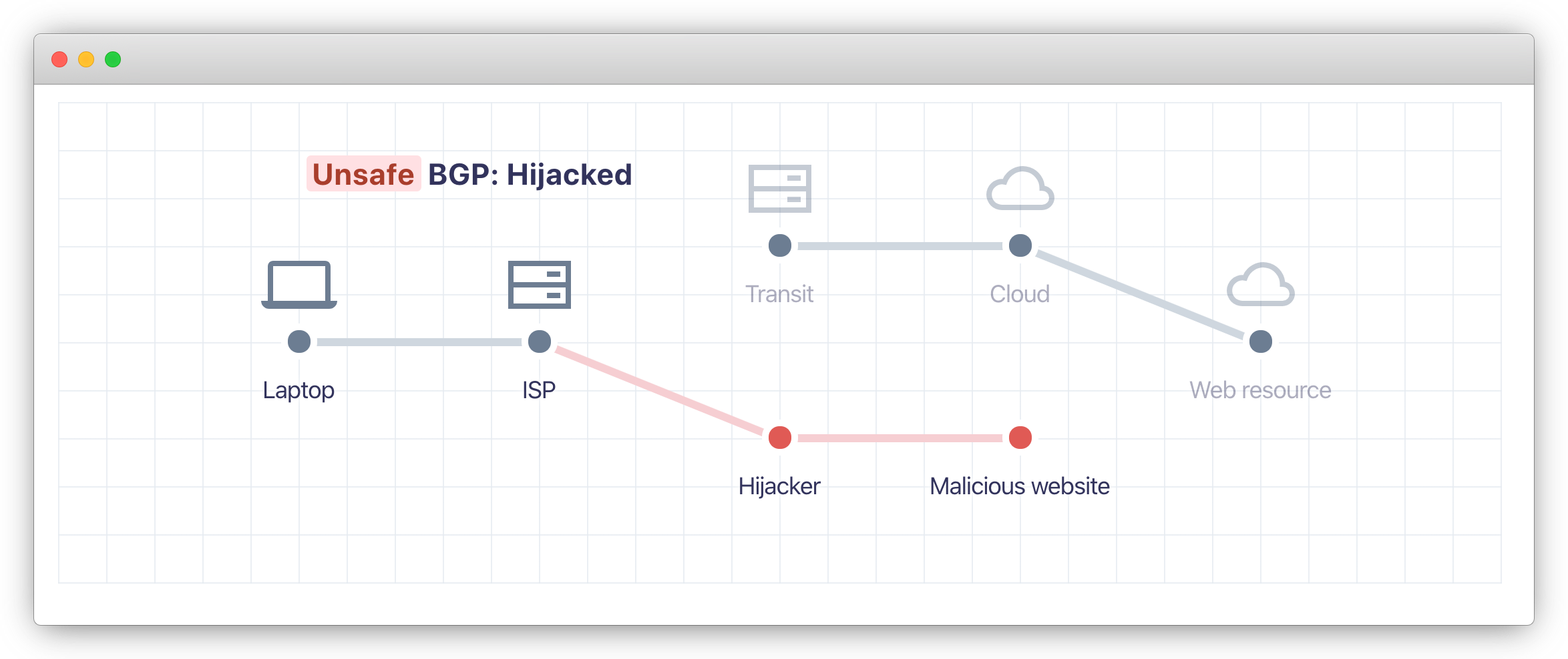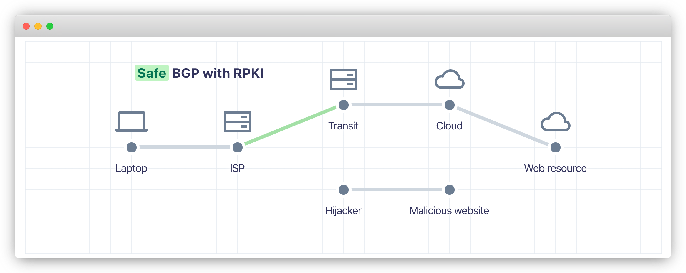 To understand RPKI, one must first understand the problem it's trying to solve: BGP Hijacking. Cloudflare's isBGPSafeYet.com controversial website actually does a fantastic job of illustrating what BGP Hijacking is: